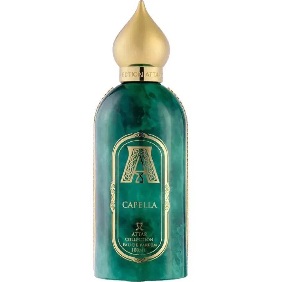 Capella – premiera casei Attar Collection, prezentată la Dubai pe 23 ianuarie 2025 și creată de parfumeurul Dominique Moelhausen. Inspirat de natură și de prospețimea verdelui primordial, acest parfum evocă senzația unei plimbări printr-o grădină matinală, unde ceaiul, iasomia și citricele se împletesc într-o armonie de prospețime și echilibru. Piramida notelor Note de vârf: bergamotă, frunze de ceai, iasomie – creează un început scânteietor și revigorant. Note de mijloc: vetiver, piper alb – adaugă textură pământie și o tentă ușor condimentată. Note de bază: citrice și ambră – completează compoziția cu căldură și strălucire, oferind o eleganță delicată. Caracterul parfumului Capella îmbină luminozitatea citricelor cu răcoarea frunzelor de ceai și finețea iasomiei. Inima sa are un ton discret-condimentat: vetiverul aduce prospețimea unei poieni de pădure, iar piperul alb adaugă căldură și profunzime. Baza învăluie cu moliciunea ambrei și lejeritatea citricelor, conturând un parfum rafinat și echilibrat. Flaconul, în nuanțe de verde marmorat cu accente aurii, subliniază luxul și prospețimea naturală a acestei compoziții.