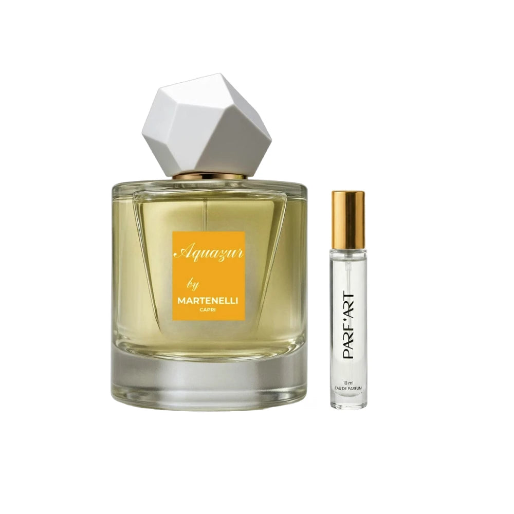 Martenelli Aquazur este esența purității și prospețimii, capturând esența brizelor marine într-o sticlă elegantă. Acest parfum debutează cu note vibrante de citrice și sare de mare, evocând imaginea valurilor spumante care se izbesc de țărm. Inima parfumului se deschide cu acorduri florale delicate, împletite armonios cu nuanțe subtile de iasomie acvatică, creând o simfonie olfactivă ce răcorește și revigorează simțurile. Baza de mosc și lemn de santal adaugă o atingere de sofisticare și adâncime, lăsând o impresie de durată, plină de mister și eleganță.